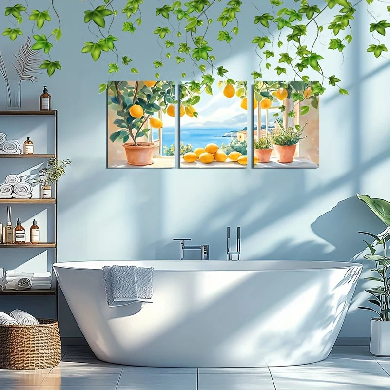 2D Flat, 3pcs wooden framed canvas painting art print