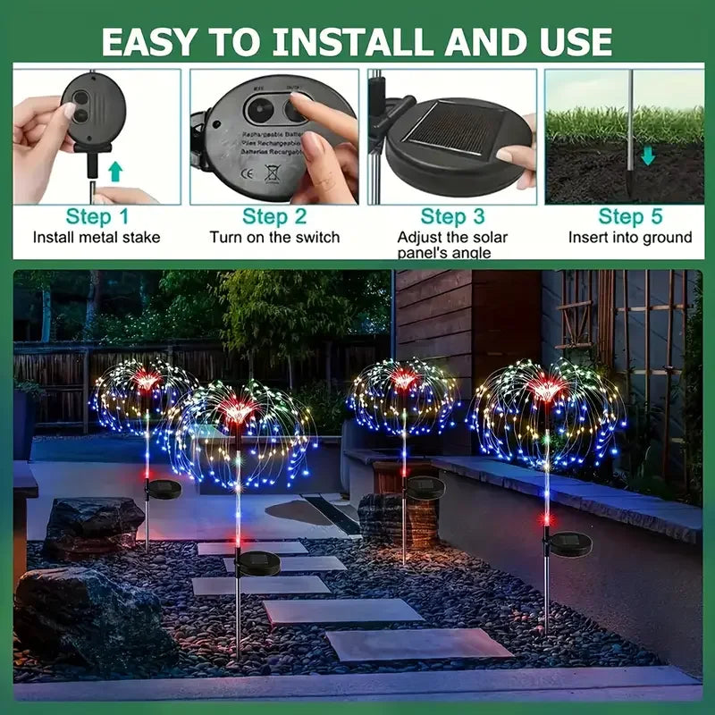 3/1pcs LED Solar Firework Lights Garden Decoration Fairy Lights