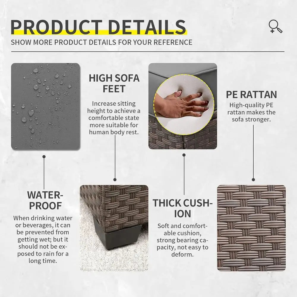 9-Piece Outdoor Wicker Rattan Patio Furniture Set with Grey Cushions and 45 Gas Fire Pit Table