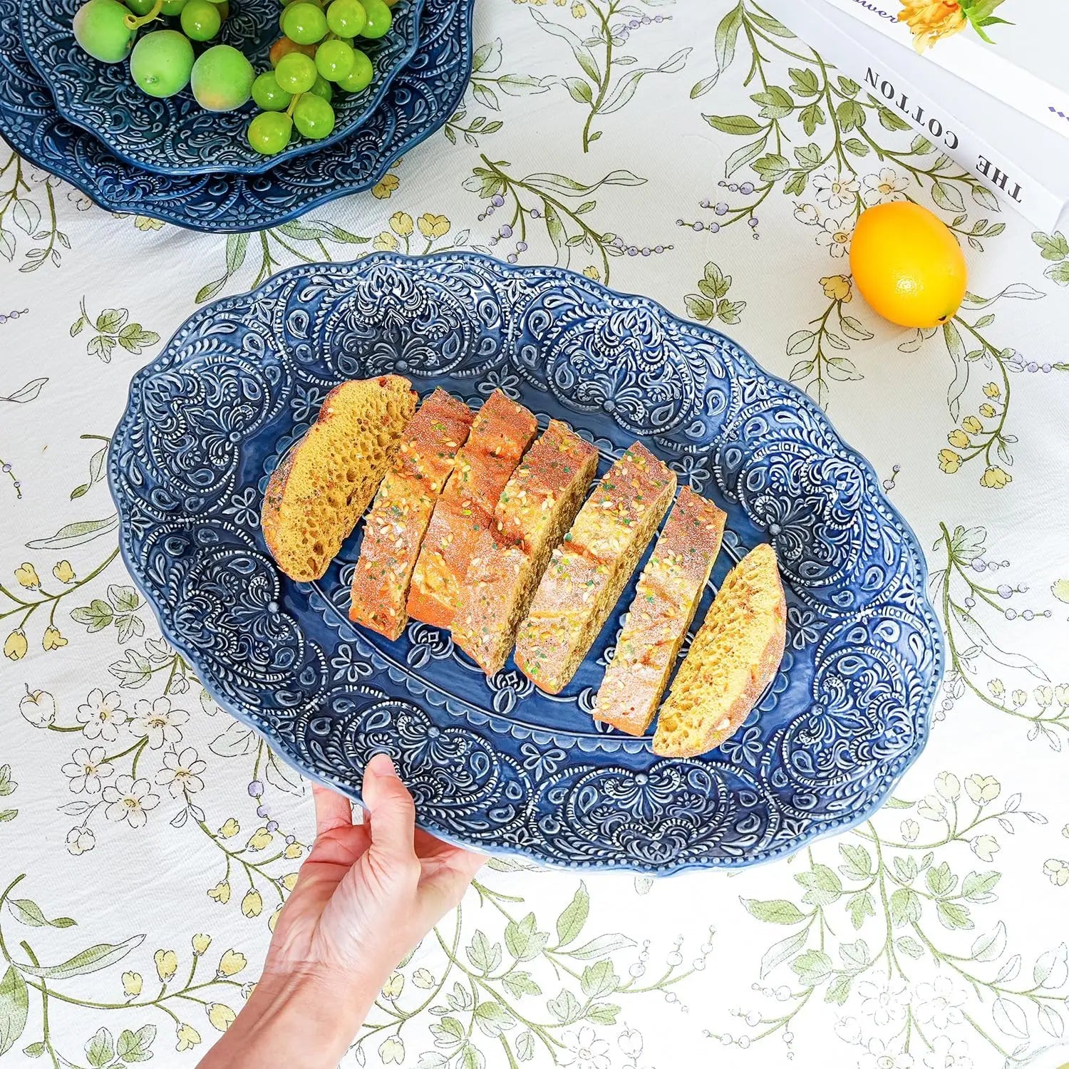 Antique Baroque Style Porcelain Serving Platter, Set of 2