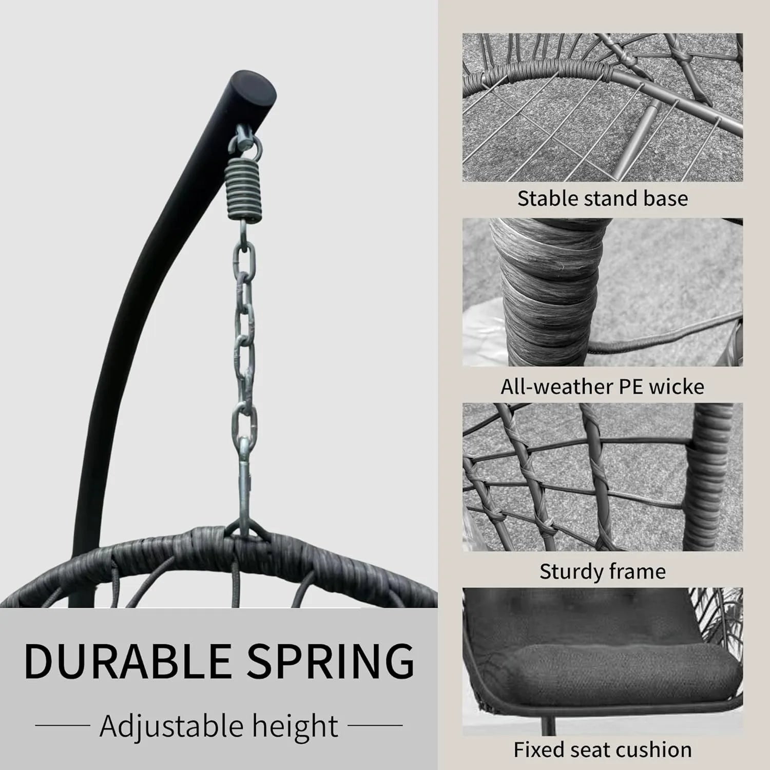 Hanging Egg Chair with Stand Indoor Outdoor, Foldable Rattan Wicker Hammock