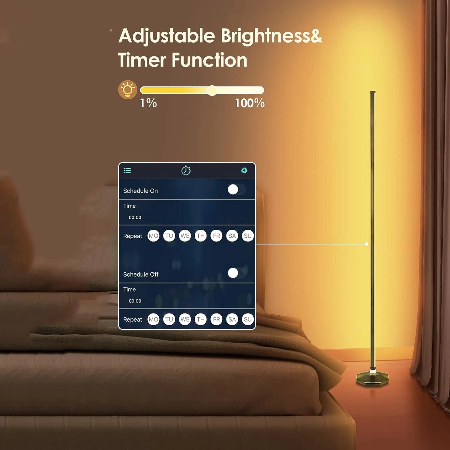 【Smart App & Remote Control】The smart floor lamp can be controlled by the remote control (PLEASE REMOVE THE PLASTIC FILM BEFORE USE) and Bluetooth APP, The APP application can DIY your favorite light mode, and better adjust the light color, brightness, music and timing time. When you combine multiple LED corner lights, you can control them at the same time through APP. (The remote control distance is 5-10 meters, and the APP control distance is 10-30 meters. )